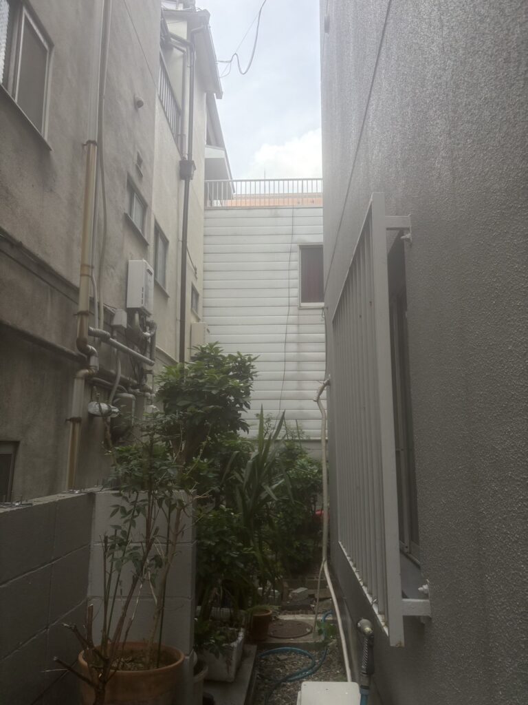 しかも重機が入れない場所で、周囲にはフェンスや隣家のベランダが近接しているため、作業には細心の注意が必要。