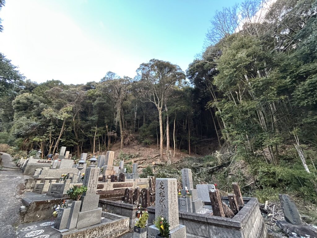 ご相談のきっかけは、墓地の裏山に生えていた樹木が倒れ、お墓を直撃してしまったという事故でした。