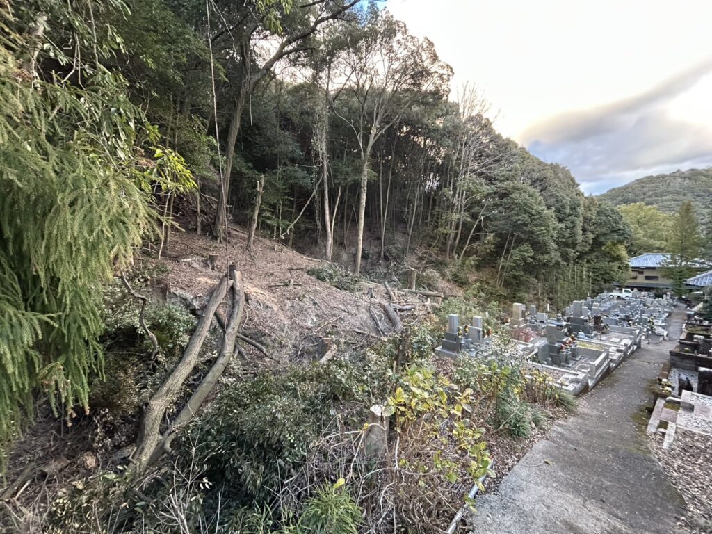施工後は、危険な樹木がすべて除去され、墓地周辺の安全性が大幅に改善されました。