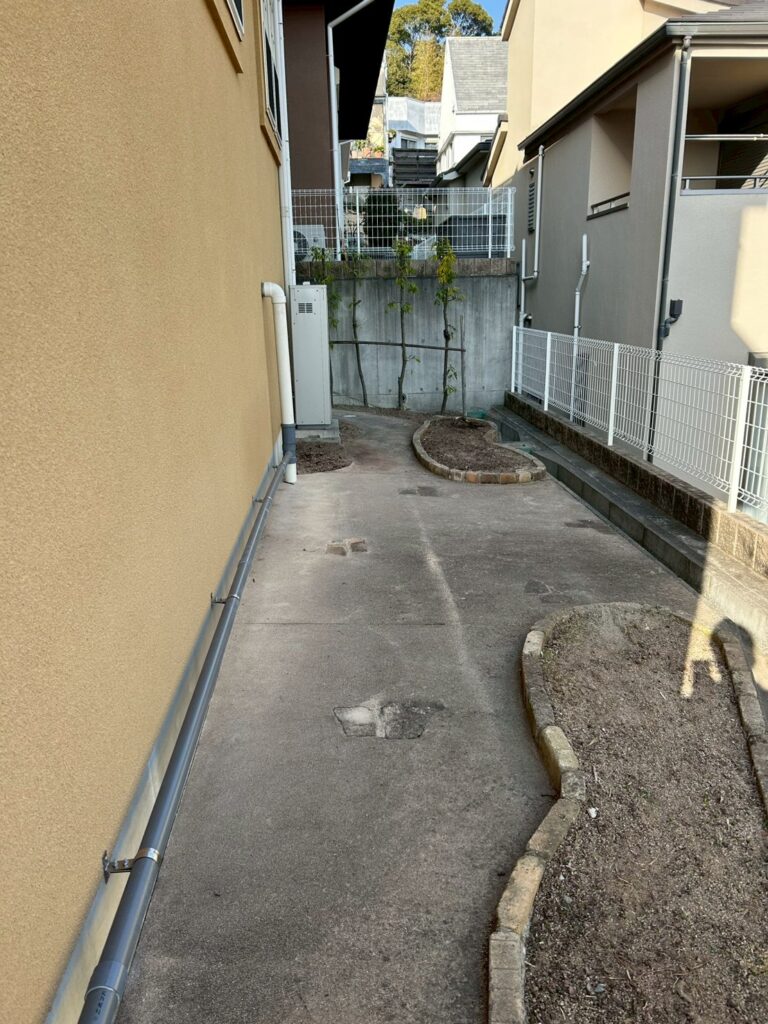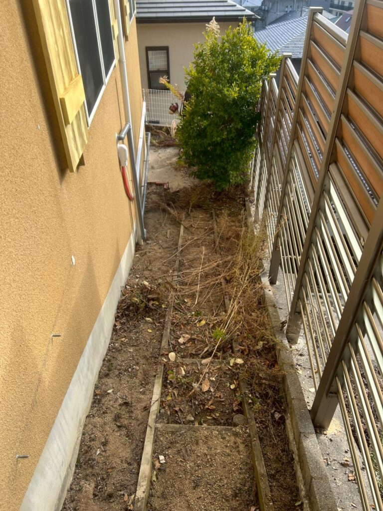 高低差のある現場でしたが、ゴミの搬出や作業動線にも配慮しながら進めたことで、見た目だけでなく使いやすさも改善された仕上がりとなりました。