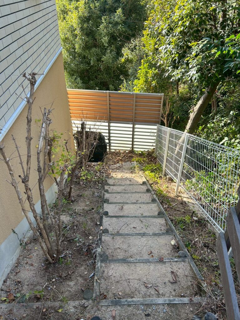 高低差があるため、作業やゴミの搬出にはどうしても階段を使用する必要があり、体力的にも気を使う現場条件でした。