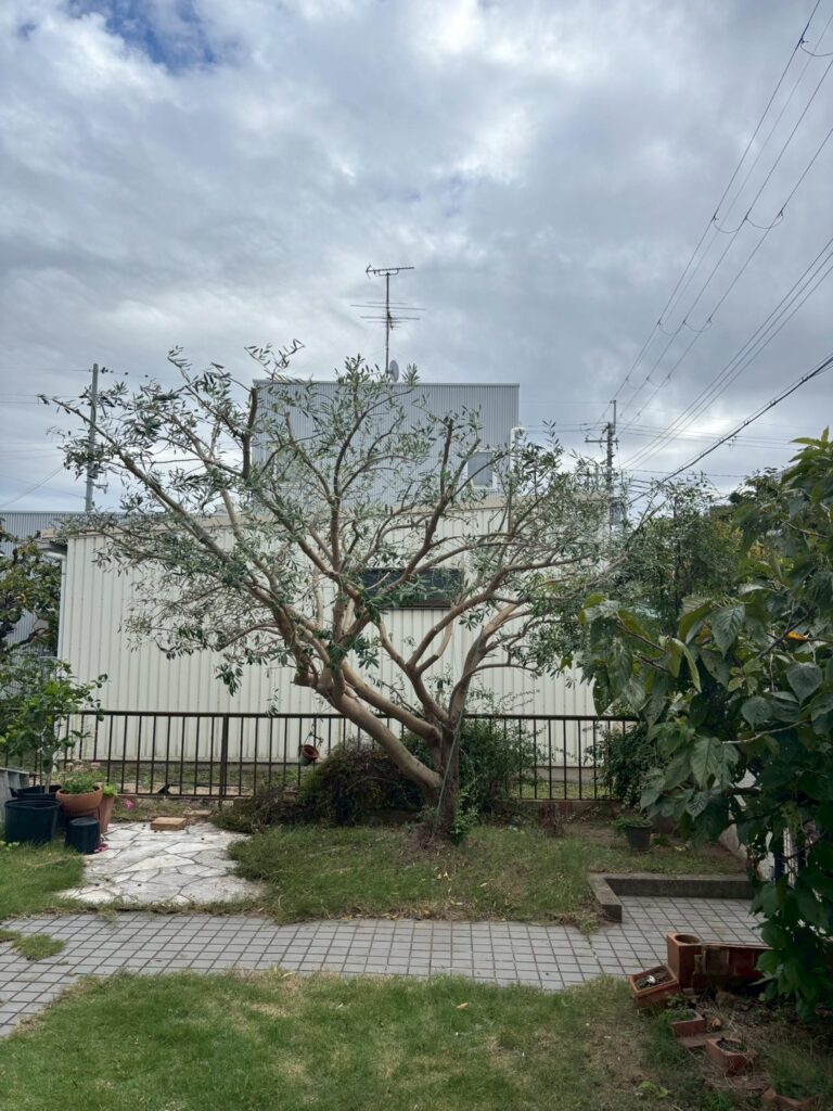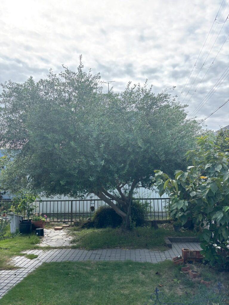 ✅約4mのオリーブの剪定(混み合った枝を大きく間引き、樹形をスリムに)