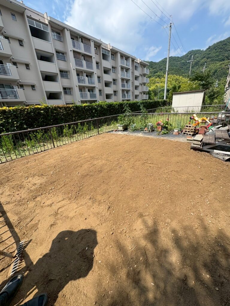 庭全体が明るくなり、裸足でも安心して歩ける柔らかい仕上がりに。