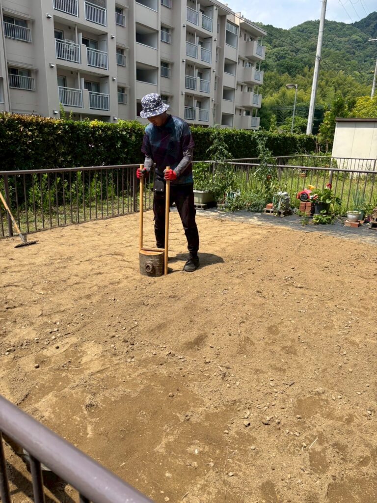 ✅シートの下にある土壌の確認と再整地(凸凹をなくすための均し作業)