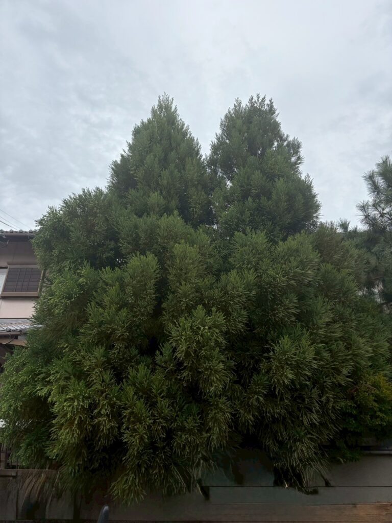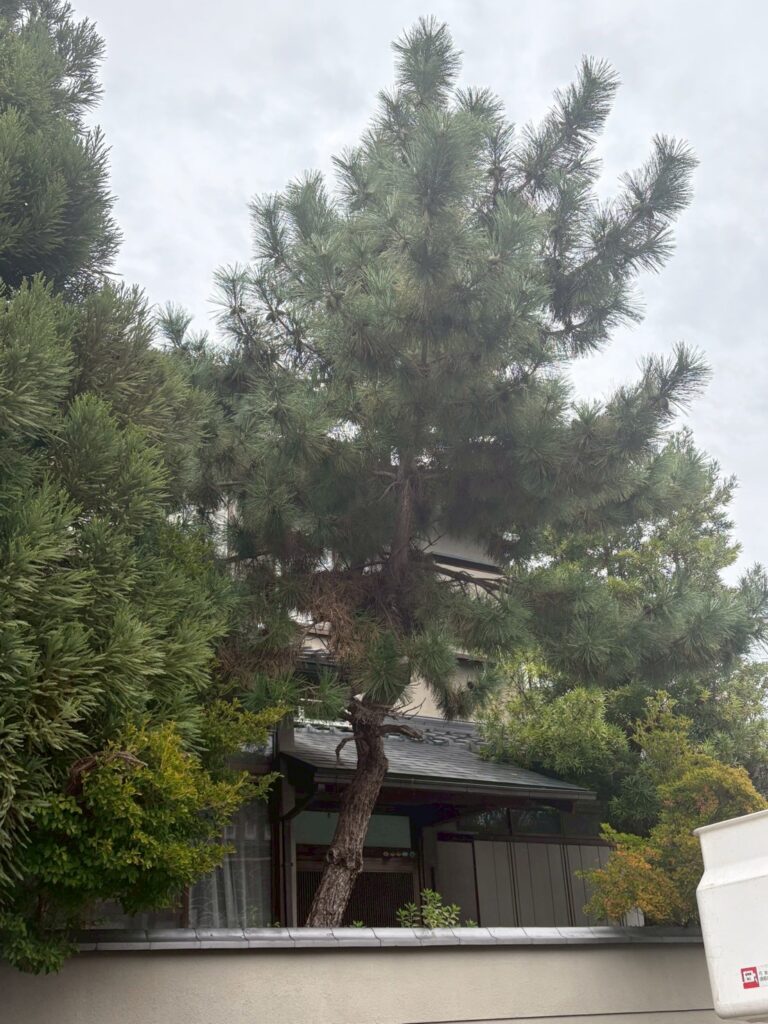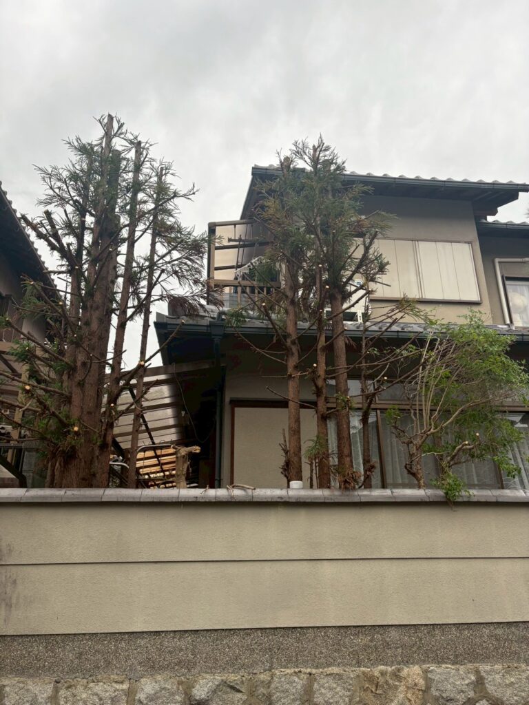 今回の八幡市での中・高木剪定では、スギや松など伸びきった木々を安全かつ丁寧に切り詰め、明るく開放的なお庭へと再生させました。