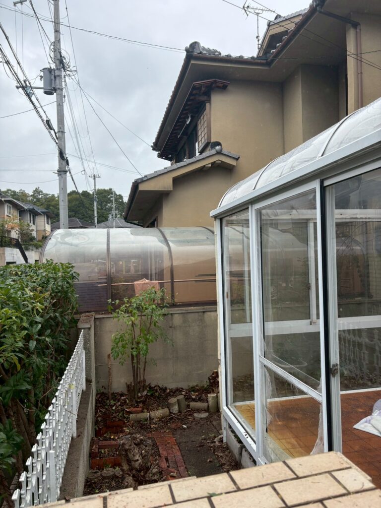 お庭にはガラス張りのサンルームがあり、その周囲や家のまわりの通路が樹木や雑草で生い茂り、通りにくい状態になっていました。