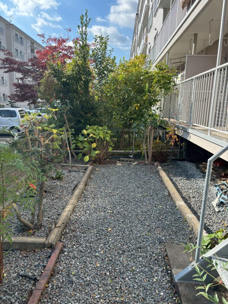 砂利部分から生えていた雑草も除去し、防草効果を少しでも維持できるよう整地・清掃も丁寧に実施しました。